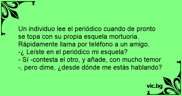 - Sí -contesta el otro, y añade, соn mucho temor-, pero dime, ¿desde dónde me estás hablando?
