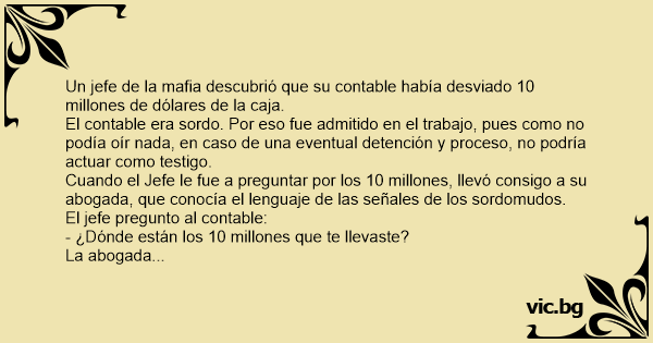Cuando el Jefe le fue a preguntar por los 10 millones, llevó consigo a su abogada, que conocía el lenguaje de las señales de los sordomudos.