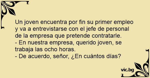 - En nuestra empresa, querido joven, se trabaja las ocho horas.