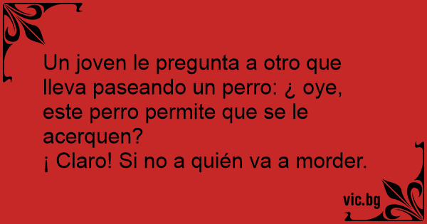 Un joven le pregunta a otro que lleva paseando un реrrо: ¿ oye, este реrrо permite que se le acerquen?