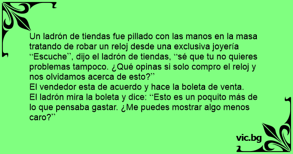 El ladrón mira la boleta y dice: Esto es un poquito más de lo que pensaba gastar. ¿Me puedes mostrar algo menos caro?