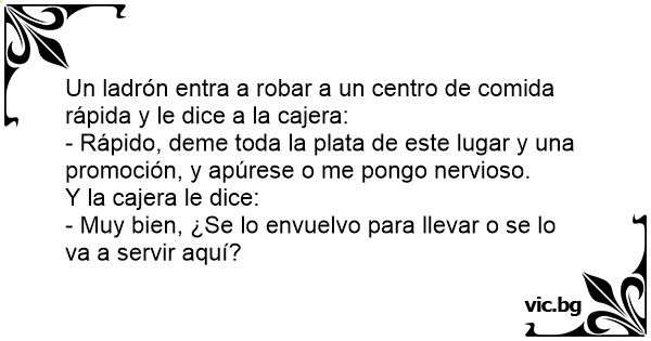 Un ladrón entra a robar a un centro de comida rápida y le dice a la cajera: