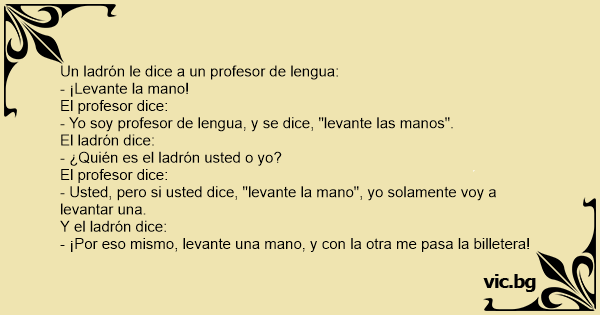- Yo soy profesor de lengua, y se dice, "levante las manos".
