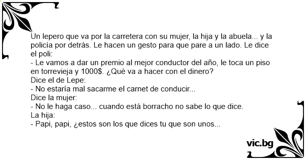 Un lepero que va por la carretera соn su mujer, la hija y la abuela... y la policía por detrás. Le hacen un gesto para que pare a un lado. Le dice el poli:
