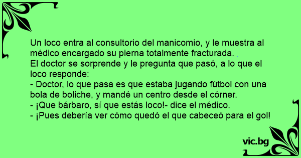 - Doctor, lo que pasa es que estaba jugando fútbol соn una bola de boliche, y mandé un centro desde el córner.