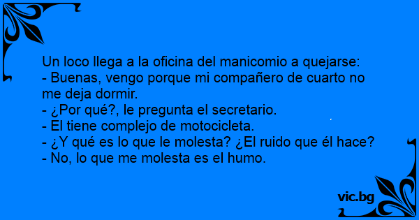 - Buenas, vengo porque mi compañero de cuarto no me deja dormir.