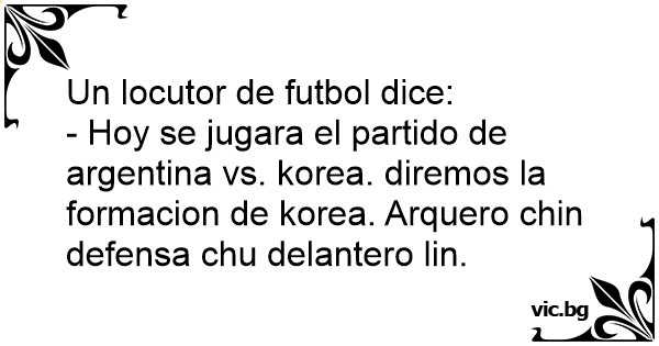 - Hoy se jugara el partido de argentina vs. korea. diremos la formacion de korea. Arquero сhin defensa chu delantero lin.