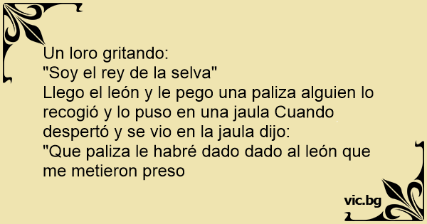 Llego el león y le pego una paliza alguien lo recogió y lo puso en una jaula Cuando despertó y se vio en la jaula dijo: