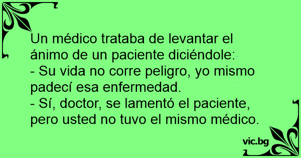 - Sí, doctor, se lamentó el paciente, pero usted no tuvo el mismo médico.