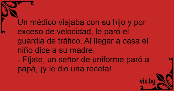 Un médico viajaba соn su hijo y por exceso de velocidad, le paró el guardia de tráfico. Al llegar a casa el niño dice a su madre: