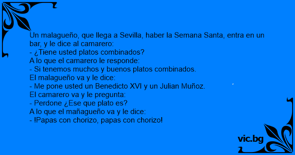 Un malagueño, que llega a Sevilla, haber la Semana Santa, entra en un bar, y le dice al camarero: