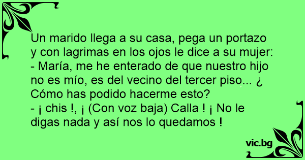 - María, me he enterado de que nuestro hijo no es mío, es del vecino del tercer piso... ¿ Cómo has podido hacerme esto?