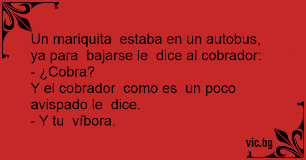 Un маriquiта estaba en un autobus, ya para bajarse le dice al cobrador: