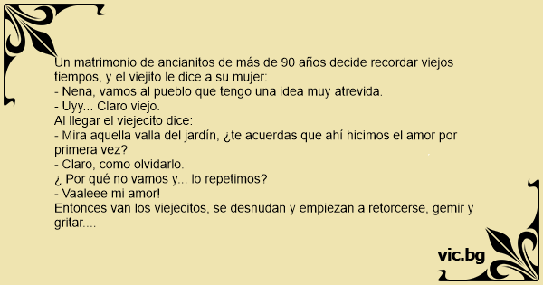 Un matrimonio de ancianitos de más de 90 años decide recordar viejos tiempos, y el viejito le dice a su mujer:
