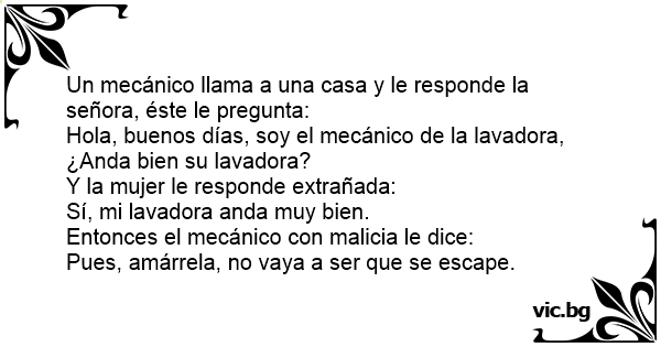 Un mecánico llama a una casa y le responde la señora, éste le pregunta: