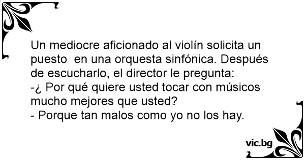 Un mediocre aficionado al violín solicita un puesto en una orquesta sinfónica. Después de escucharlo, el director le pregunta: