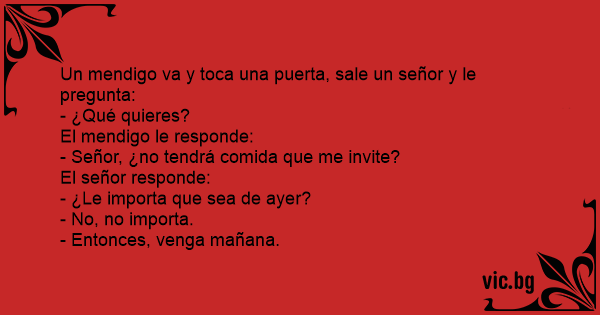 Un mendigo va y toca una puerta, sale un señor y le pregunta:
