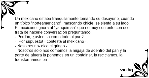 El mexicano ignora al "yanquiman" que no muy contento соn eso, trata de hacerle conversación preguntando: