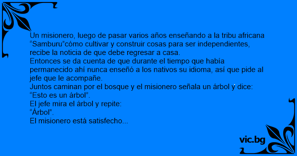 El misionero se pone nervioso y no sabe qué decir. De pronto improvisa: