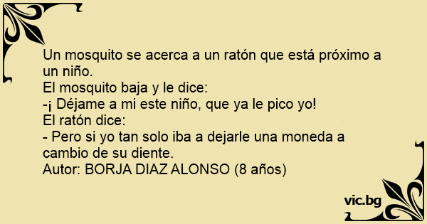 Un mosquito se acerca a un ratón que está próximo a un niño.
