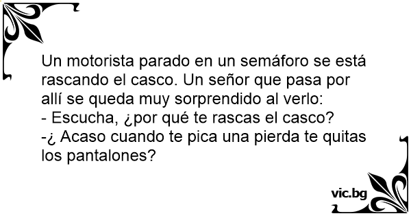 Un motorista parado en un semáforo se está rascando el casco. Un señor que pasa por allí se queda muy sorprendido al verlo: