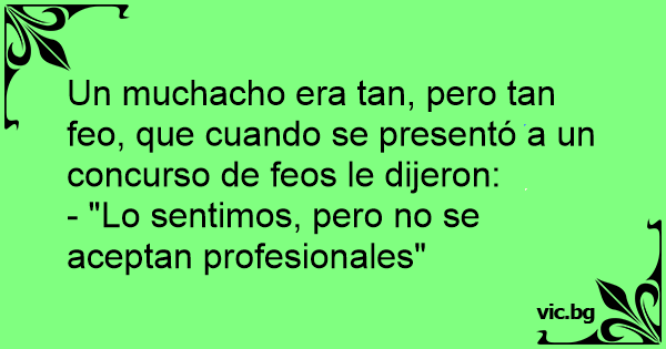 Un muchacho era tan, pero tan feo, que cuando se presentó a un concurso de feos le dijeron: