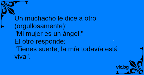 Dos mujeres charlando: - Mi marido es un ángel. -¡ Qué suerte! - El mío todavía vive.