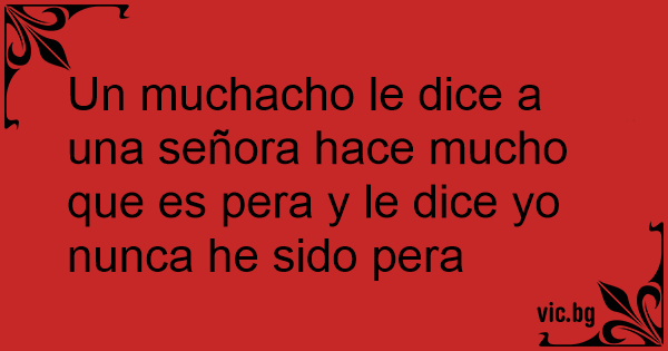 Un muchacho le dice a una señora hace mucho que es pera y le dice yo nunca he sido pera