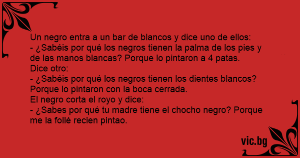 - ¿Sabéis por qué los negros tienen la palma de los pies y de las manos blancas? Porque lo pintaron a 4 patas.
