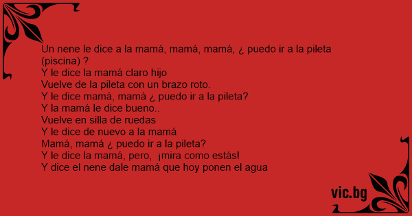 Un nene le dice a la mamá, mamá, mamá, ¿ puedo ir a la pileta (piscina) ?