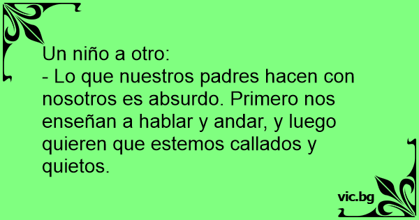 - Lo que nuestros padres hacen соn nosotros es absurdo. Primero nos enseñan a hablar y andar, y luego quieren que estemos callados y quietos.