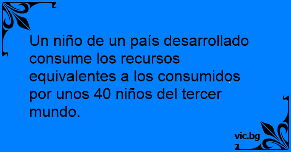 Un niño de un país desarrollado consume los recursos equivalentes a los consumidos por unos 40 niños del tercer mundo.