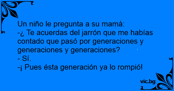 -¿ Te acuerdas del jarrón que me habías contado que pasó por generaciones y generaciones y generaciones?