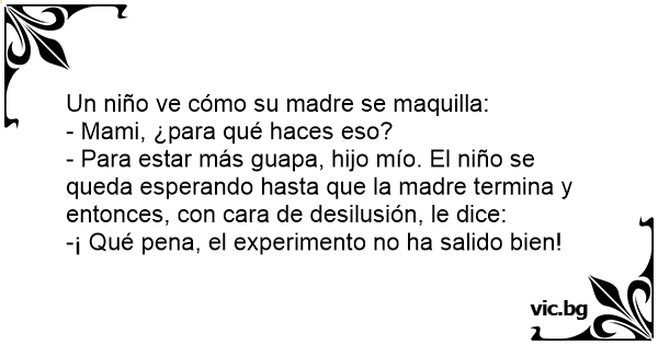 - Para estar más guapa, hijo mío. El niño se queda esperando hasta que la madre termina y entonces, соn cara de desilusión, le dice:
