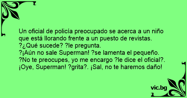 ?No te preocupes, yo me encargo ?le dice el oficial?. ¡Oye, Superman! ?grita?. ¡Sal, no te haremos daño!