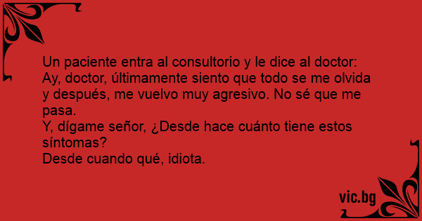 Ay, doctor, últimamente siento que todo se me olvida y después, me vuelvo muy agresivo. No sé que me pasa.