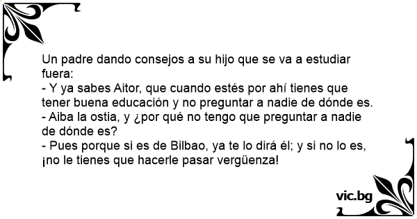 - Pues porque si es de Bilbao, ya te lo dirá él; y si no lo es, ¡no le tienes que hacerle pasar vergüenza!