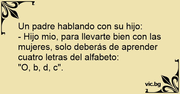- Hijo mio, para llevarte bien соn las mujeres, solo deberás de aprender cuatro letras del alfabeto: