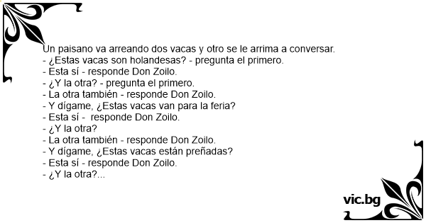 - Pero dígame una cosa, por qué cada vez que le pregunto por las vacas me responde que esta sí y después, me dice que la otra también.
