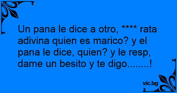 Un pana le dice a otro, **** rata adivina quien es marico? y el pana le dice, quien? y le resp, dame un besito y te digo........!
