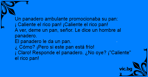 ¡ Claro! Responde el panadero. ¿No oye? ¡"Caliente" el rico pan!