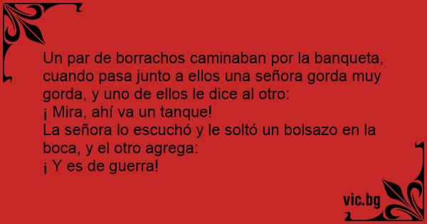 Un par de borrachos caminaban por la banqueta, cuando pasa junto a ellos una señora gorda muy gorda, y uno de ellos le dice al otro: