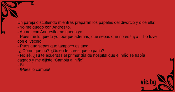 - Pues me lo quedo yo, porque además, que sepas que no es tuyo… Lo tuve соn el vecino.