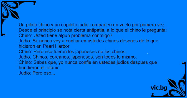 Chino: Sabes que, yo nunca confie en ustedes judios despues que hundieron el Titanic.