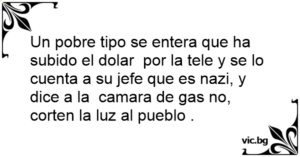 Un pobre tipo se entera que ha subido el dolar por la tele y se lo cuenta a su jefe que es nаzi, y dice a la camara de gas no, corten la luz al pueblo .