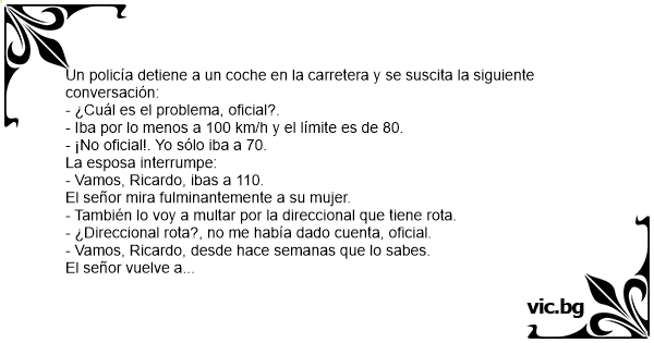 Un policía detiene a un coche en la carretera y se suscita la siguiente conversación: