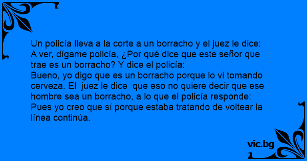 A ver, dígame policía, ¿Por qué dice que este señor que trae es un borracho? Y dice el policía: