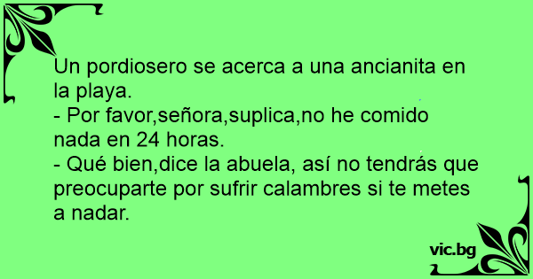 - Qué bien,dice la abuela, así no tendrás que preocuparte por sufrir calambres si te metes a nadar.