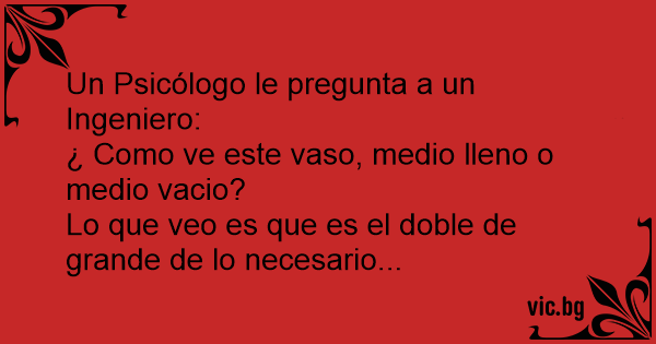 ¿ Como ve este vaso, medio lleno o medio vacio?