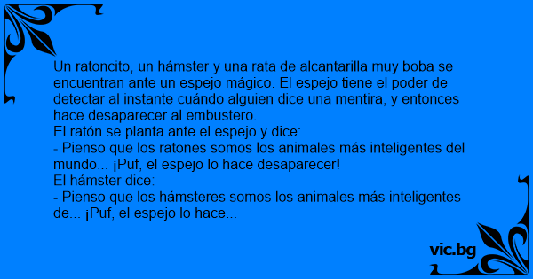 - Pienso que los hámsteres somos los animales más inteligentes de... ¡Puf, el espejo lo hace desaparecer!